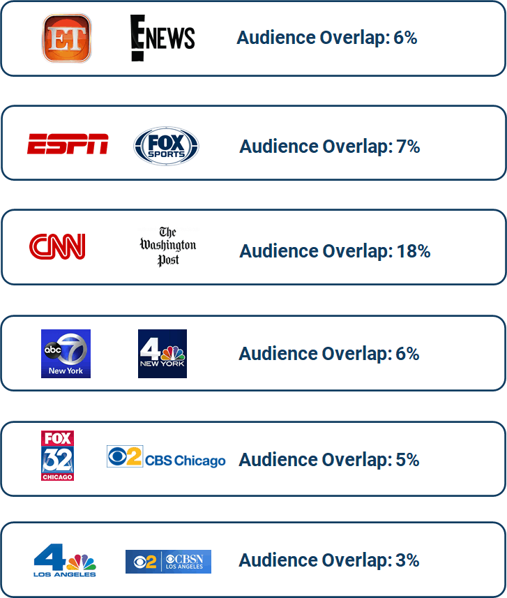 Audiences seldom “poke around” or try new sources for information. This can be seen in a cross-viewership comparison from June’s US Comscore Desktop release below:
